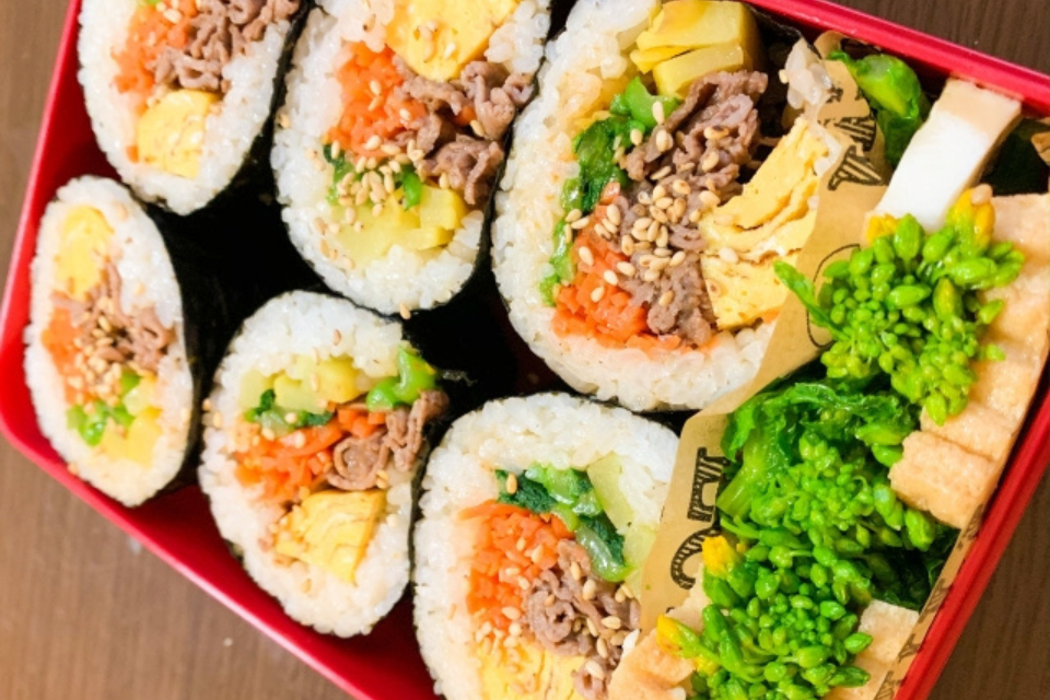 即使他们自己做午餐,有时也只能吃到 kimbap(韩国紫菜卷)或 yubchobap(韩国稻荷寿司)。